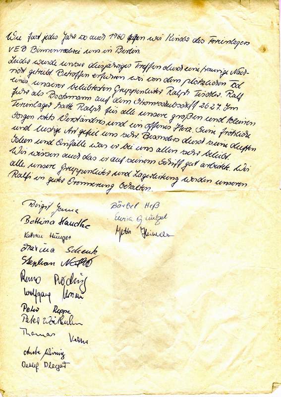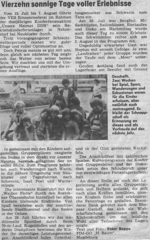 verschiedenen Ferienlagern des VEB (K) Binnenreederei betreute /