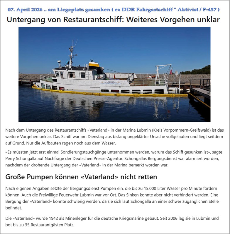 Havarien nach 1990 / ex DDR - Schiffe |