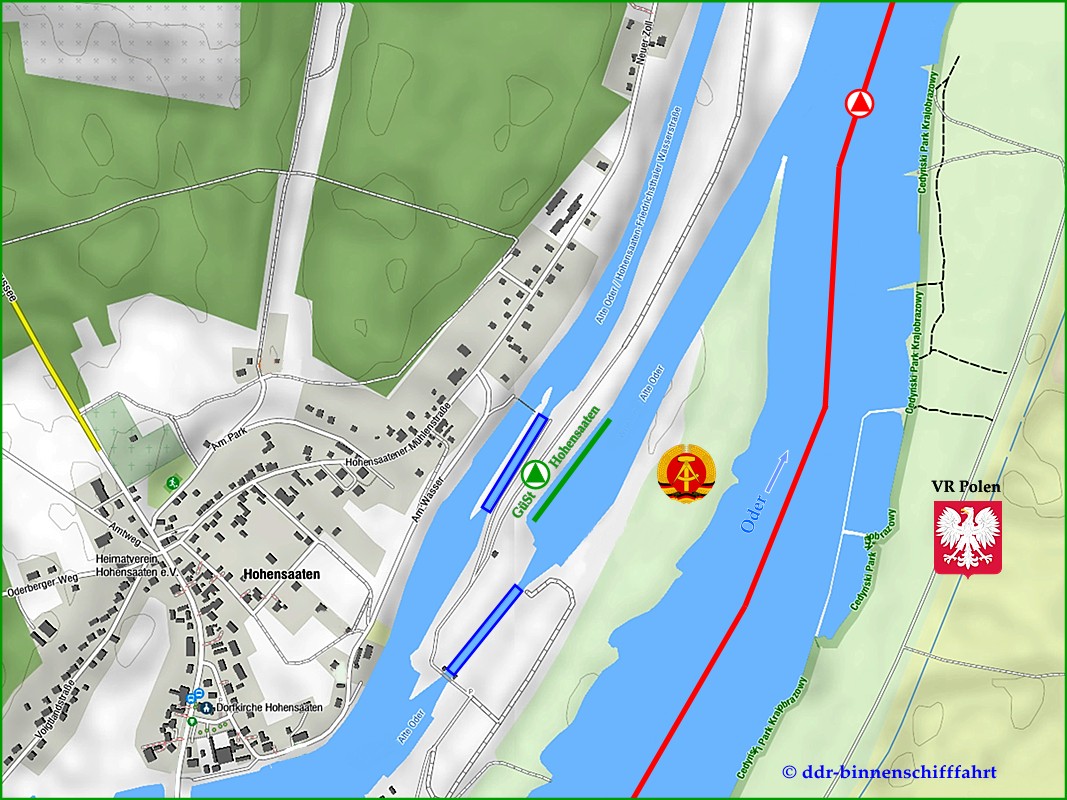 Dieser gemeinsam genutzte Grenzübergang - auf deutscher Seite - war ausschließlich für die Abfertigung der Schifffahrt angelegt. Hohensaaten selbst hat weder eine dirkete Verbindung nach Polen, und es gibt auch keine Grenzstation auf polnischer Seite.